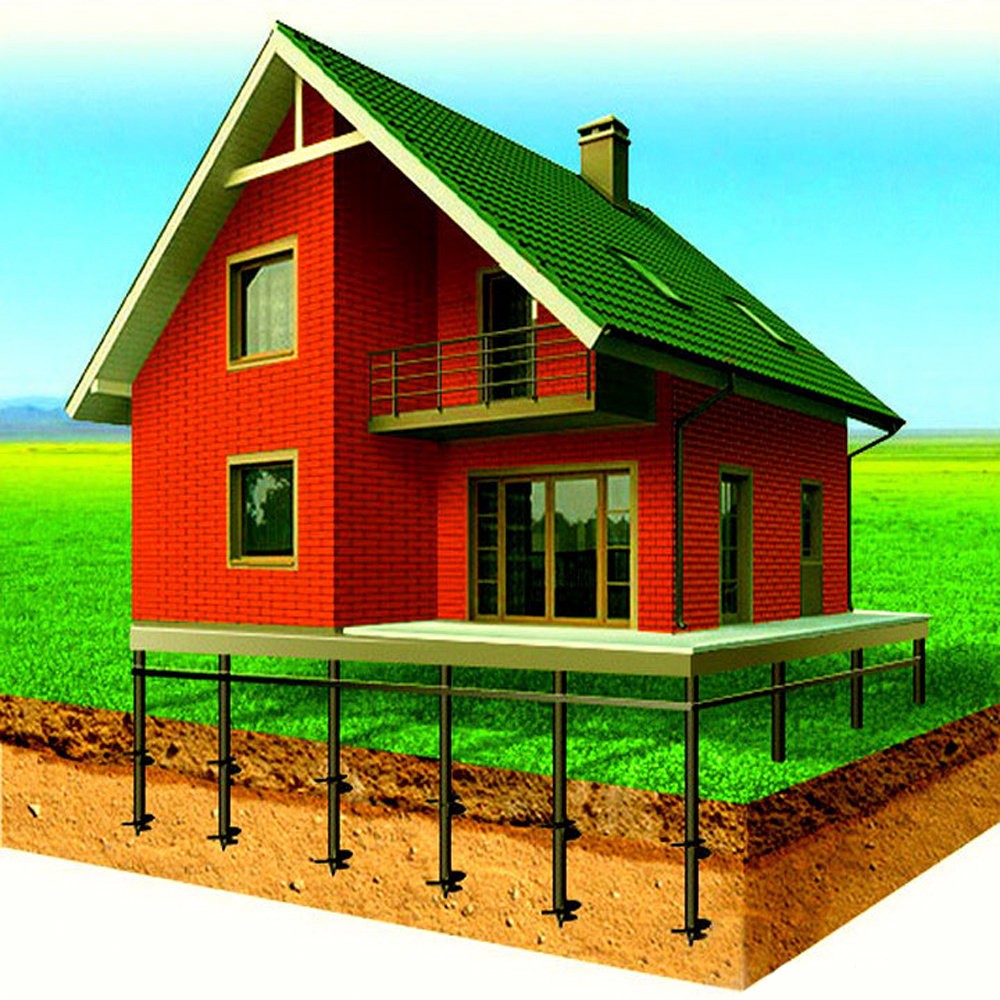 Устройство фундамента на винтовых сваях – ключевой момент во время строительства по возведению зданий на слабых грунтах. Такой фундамент представляет собой конструкцию, которая расположена под зданием и состоит из свайного поля либо отдельно стоящих элементов. Как правило, все элементы изготавливают из железобетона. Однако если требуется существенно уменьшить стоимость возводимой конструкции, то могут быть использованы материалы из армированного бетона либо бутобетона. Для повышения уровня прочности и экономии цементно-бетонного раствора, выполняют армирование. В качестве армирования выступают гладкие прутья или профилированная сталь. Сваи под фундамент монтируют под углами строения, в местах пересечения внутренних несущих и наружных стен. В том случае, если между основными элементами расстояние будет варьироваться от двух до двух с половиной метров, то между ними устанавливают промежуточные. Преимущества свайно-винтового фундамента
